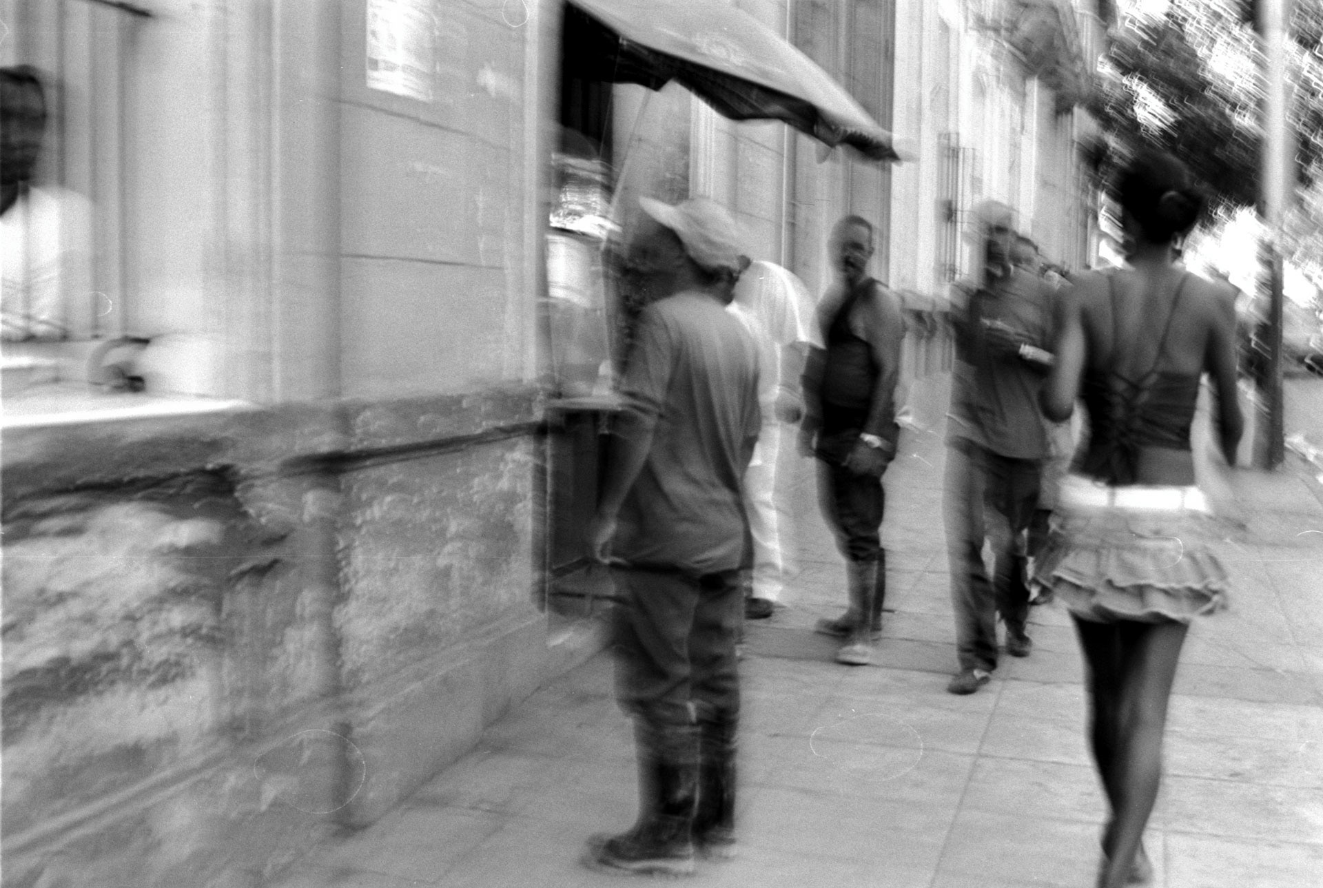 Havana is a collection of accidents and survivals. I went to Cuba with a broken Olympus SP35 - a small rangefinder that had worked fine in the UK but gave up in the Havana heat, its lens stuck, aperture and focus both jammed. It's what I had, so it's what I used. I shot ten rolls of unbranded, expired black and white film, and one roll of Kodak Gold 200. 396 exposures in total. Only four rolls came back from the developer intact; the rest were unsalvageable. The pictures that survived are gritty, not by design but by happy accident. There's no story here, no message, just what I saw: the life of the city beyond the postcard version we're used to. Street scenes, daily moments, the texture of a place captured through failing equipment and chemistry. One day I'd like to return to Cuba, to see how it has changed.